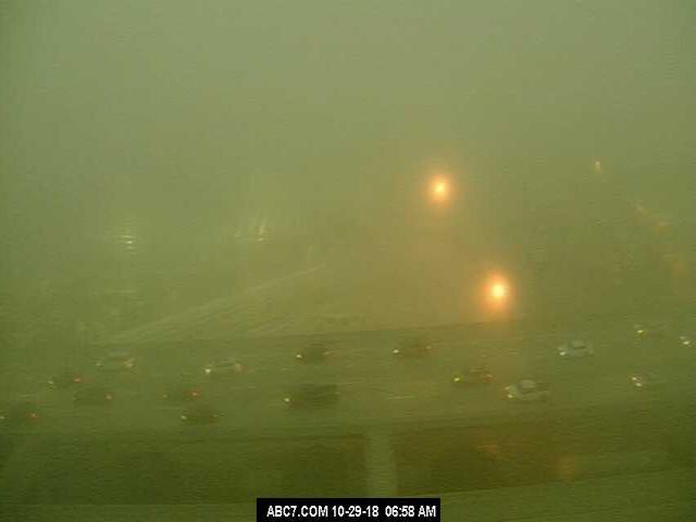Foggy commute this morning near LAX (above) and a ghostly pier at Huntington Beach (bottom) - from Jack Hales web cam wall.